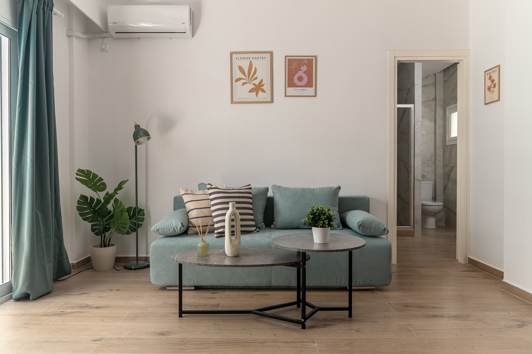 "Wake up to beautiful natural light in our Bright Front apartment. Designed to make you smile, this sunny space offers modern comfort and a vibrant urban energy."